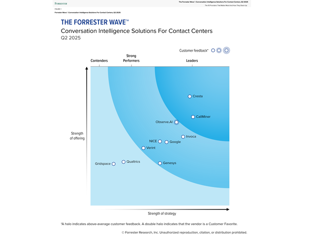 CallMiner has been named a Leader in The Forrester Wave™: Conversation Intelligence Solutions for Contact Centers, Q2 2025, which evaluates 10 vendors across 29 criteria related to current offering, strategy, and customer feedback.