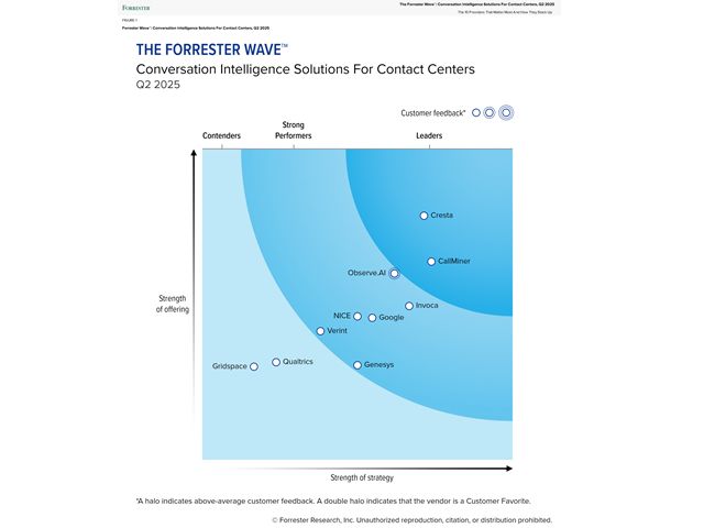 CallMiner has been named a Leader in The Forrester Wave™: Conversation Intelligence Solutions for Contact Centers, Q2 2025, which evaluates 10 vendors across 29 criteria related to current offering, strategy, and customer feedback.